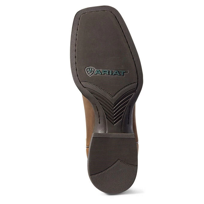 This men’s Sport Patriot II boot from Ariat is a distressed tan color and features an American Flag patch on the front and back of the shaft!