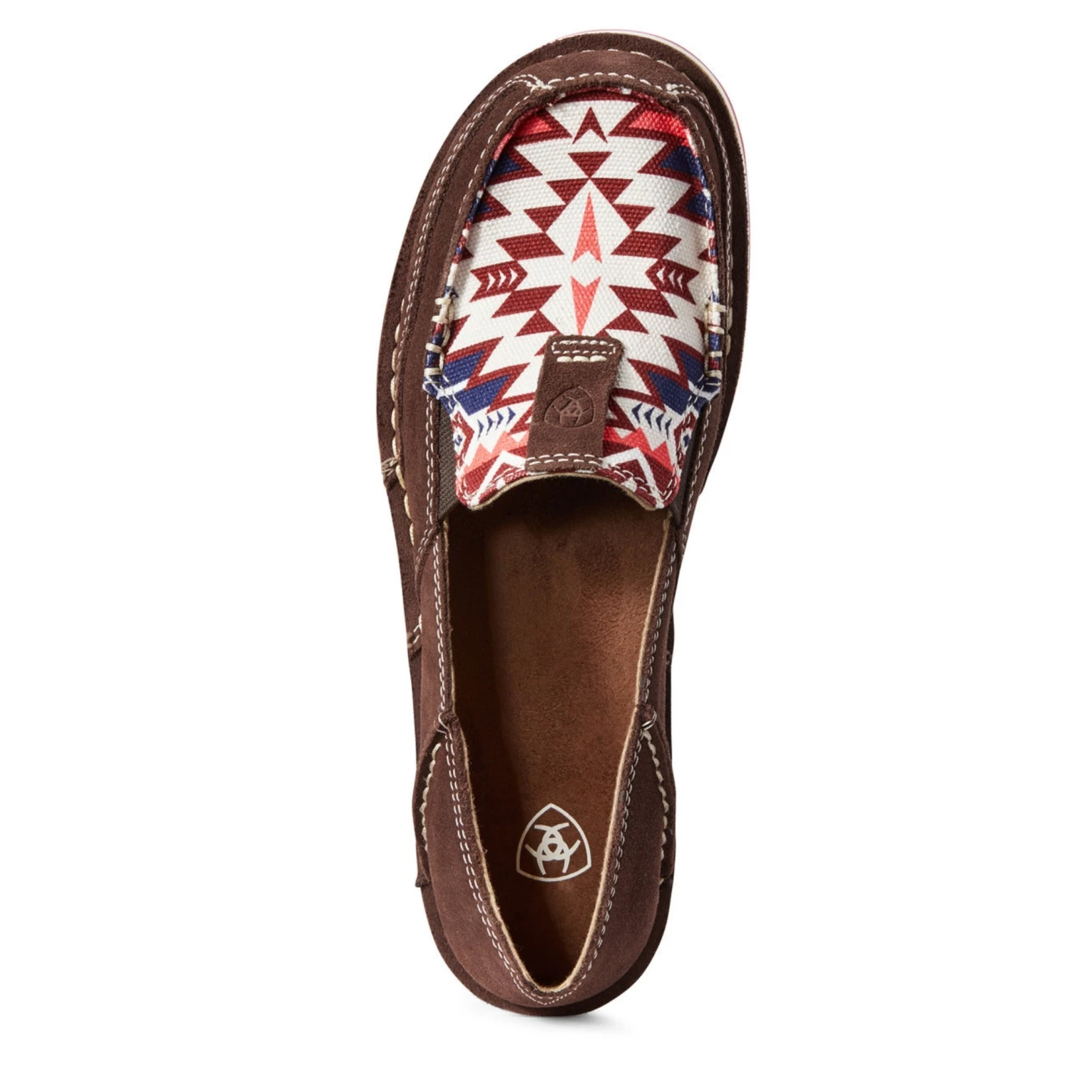 These women’s Ariat cruisers feature a brown suede outer with a burgundy Aztec design on the toe! Cruisers are so comfy; you can wear these shoes all day long!