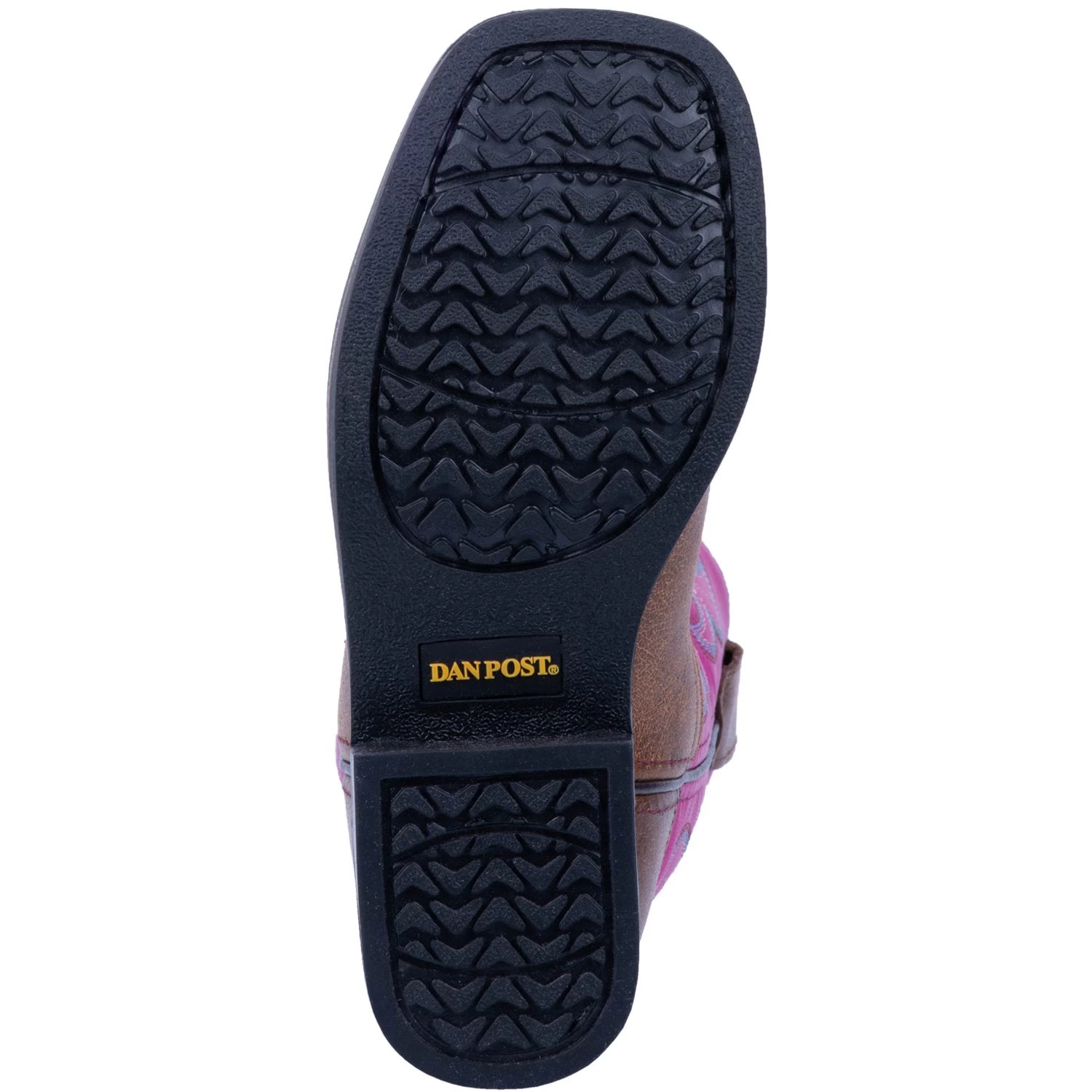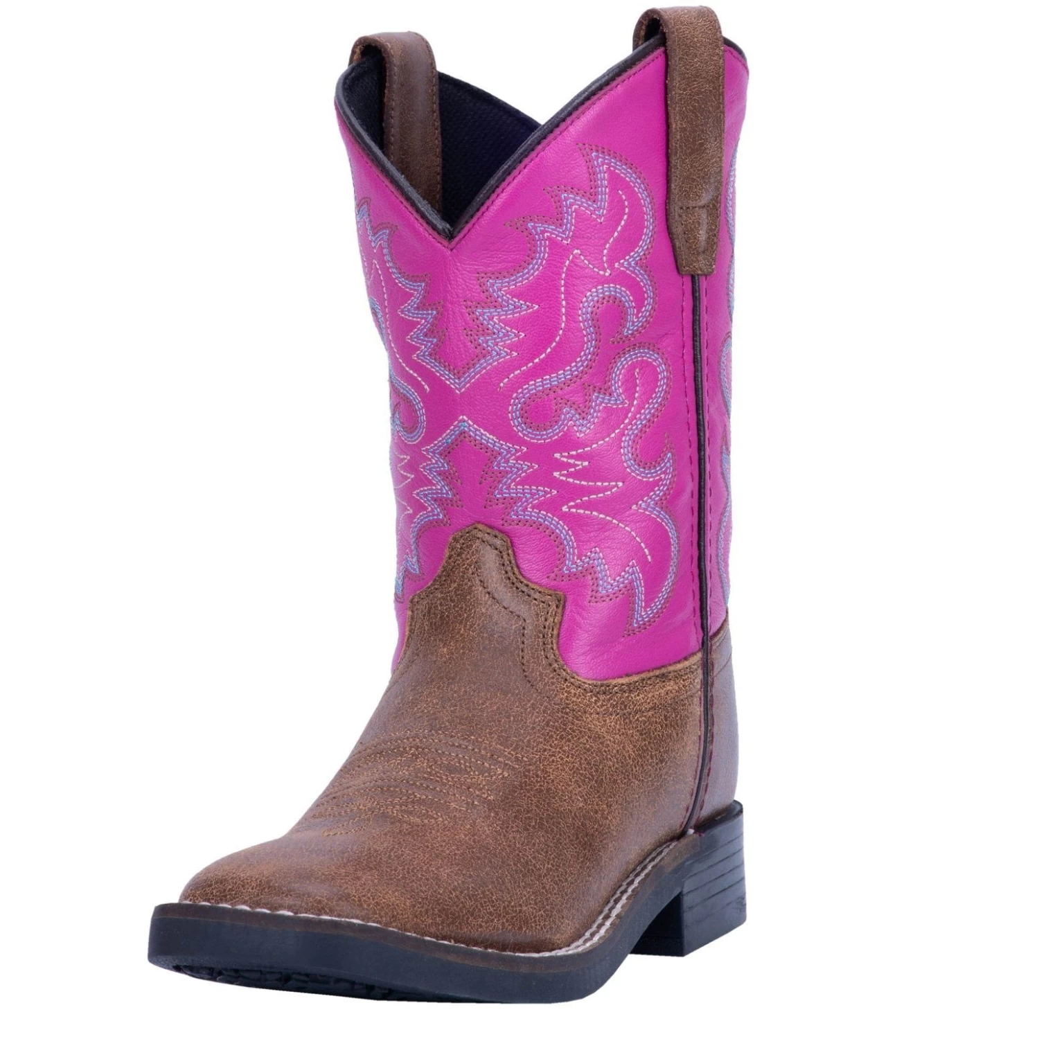 Here is a boot for the spunky girl! A distressed brown leather foot is accented with a vibrant pink top. The cushion insole and rubber outsole will keep that little gal comfy all day long for all of life’s activities!
