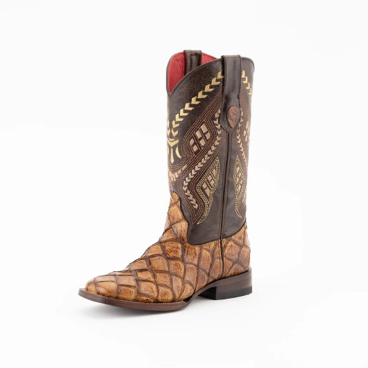 A rugged appearance that keeps both style and comfort in mind. From the bold stitch on the upper to the distinctive print pirarucu vamp, this boot captures the spirit of the west.