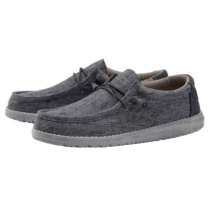 These men’s shoes from Hey Dude are a carbon color with a grey sole! Hey Dude shoes are comfortable and very light weight! If you wear a half size, we suggest choosing the next up.Â