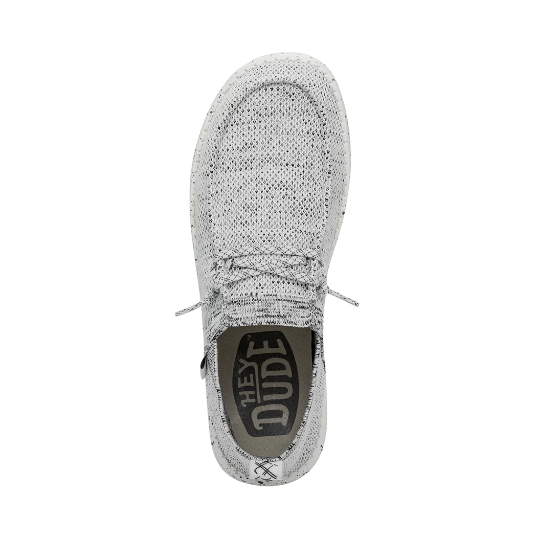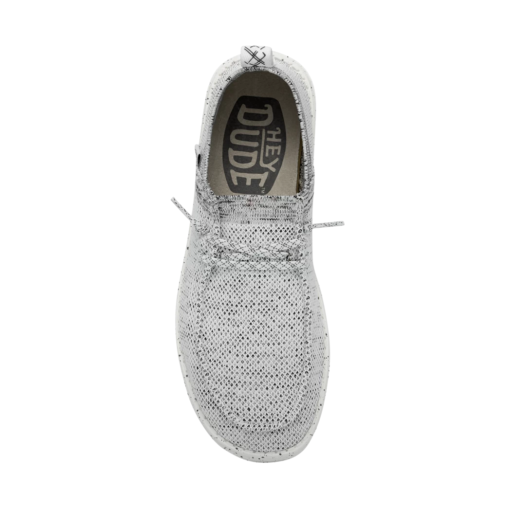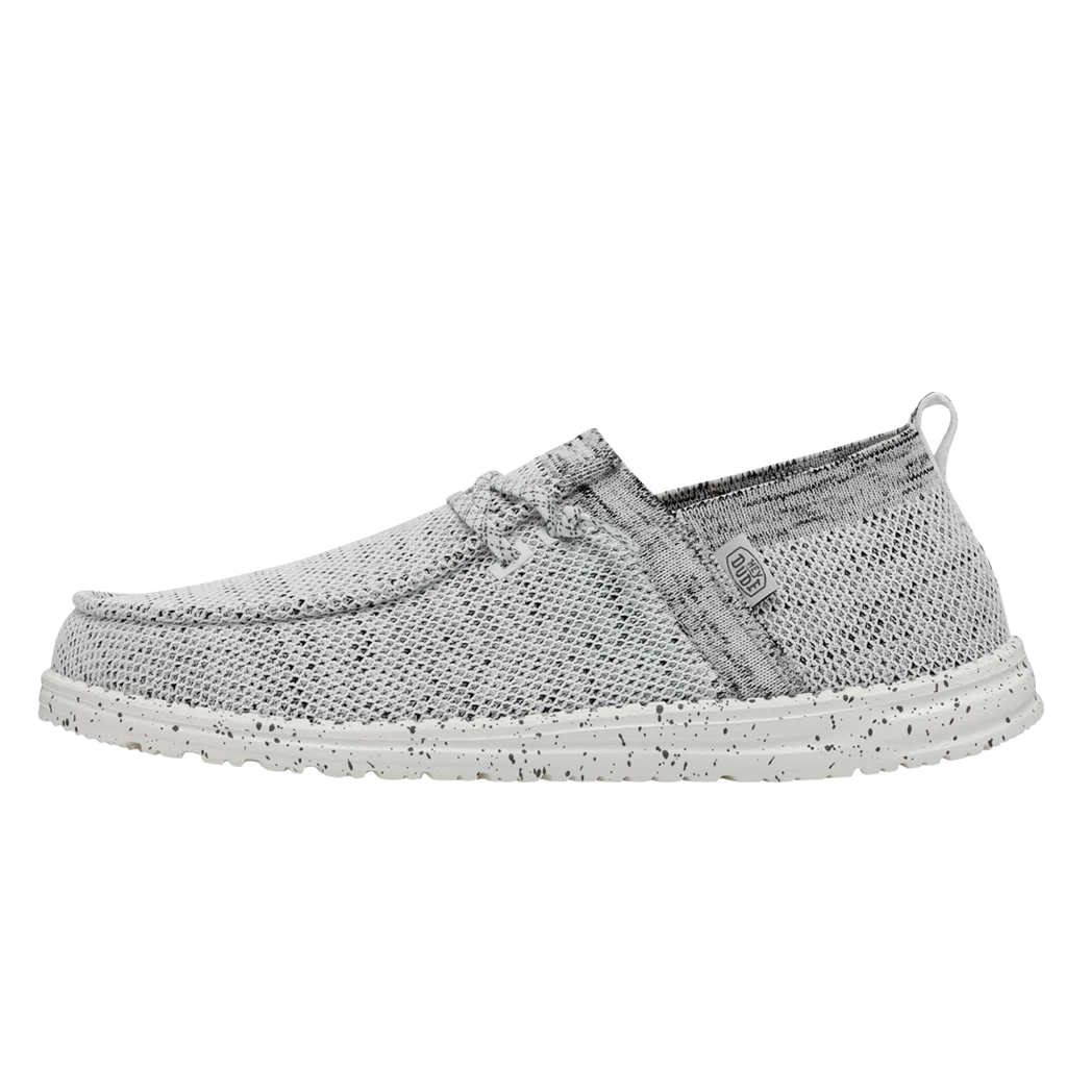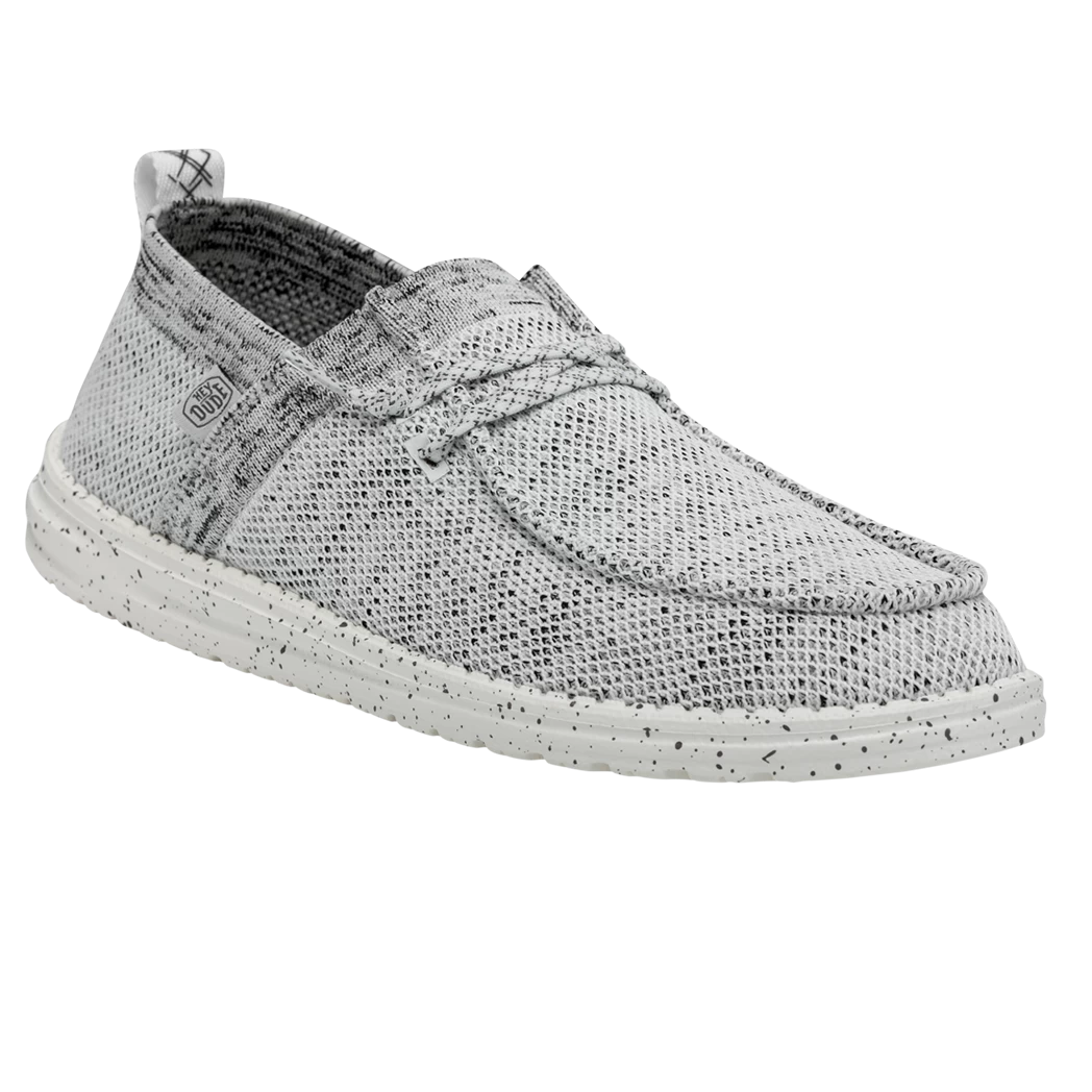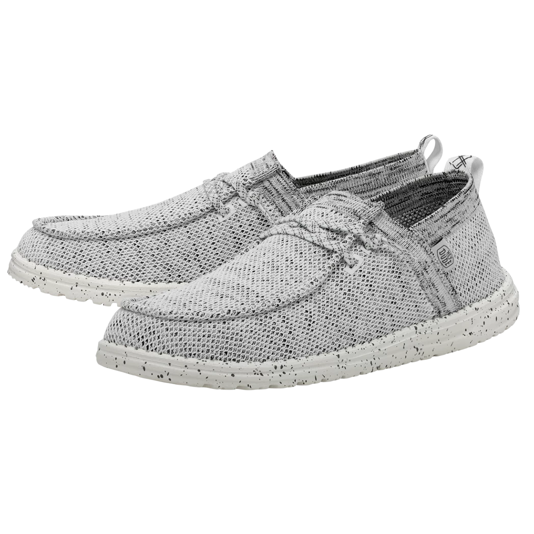 They Hey Dude Wally Halo Stone White shoe, utilizes recycled fibers, to give you a soft and breathable feel with all day comfort. The Halo features the easy-on system with cotton laces and an ultralight outsole. Great for the lake or beach these shoes dry out fast and keep a sock like fit to your foot!Â