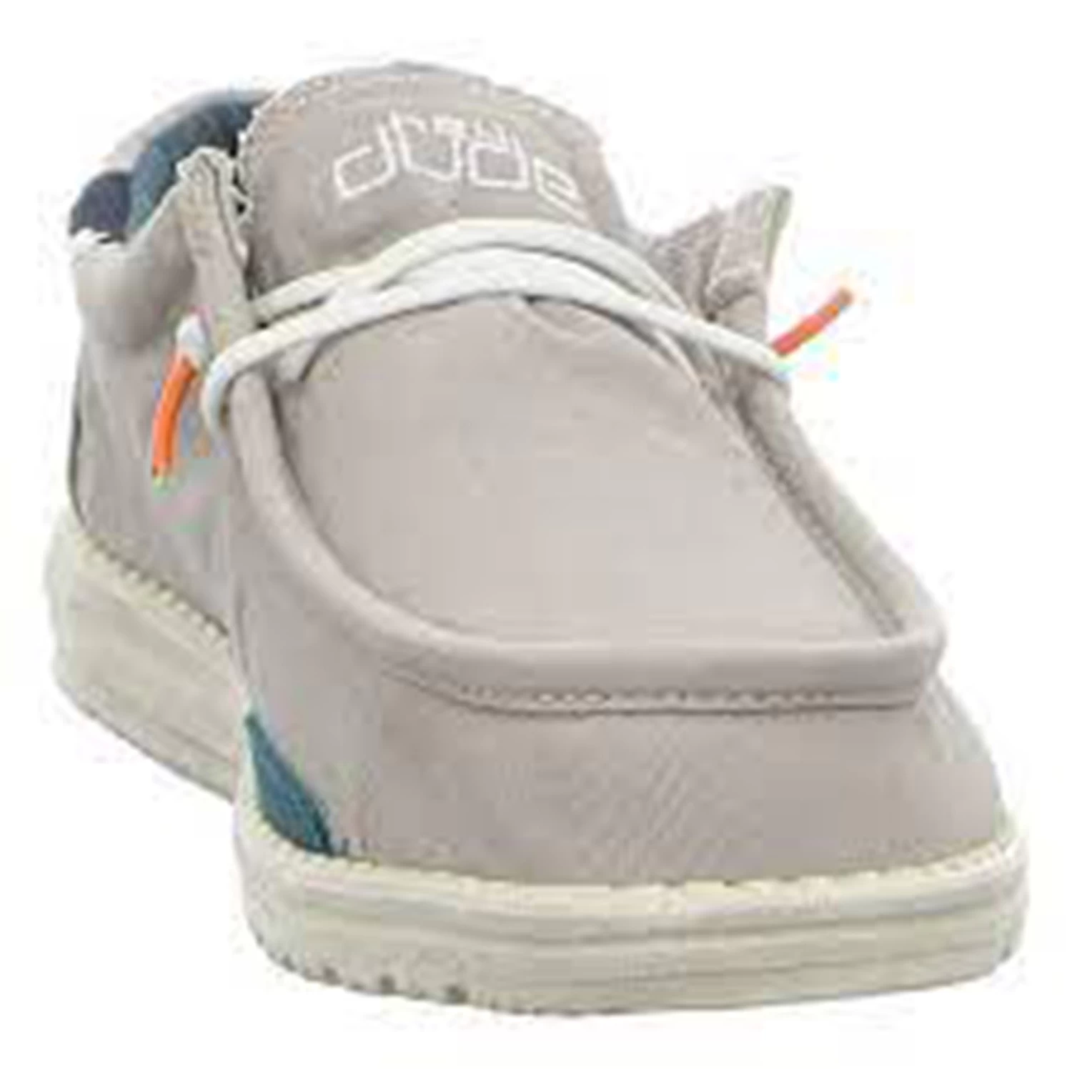 Comfort meets support in this bestselling design. The Wally Washed collection features a classic moccasin construction with breathable stonewashed canvas for a lived-in look. Built on an ultralight outsole and finished off with hey dudes thoughtfully designed easy-on system, which features no-tie elastic laces.