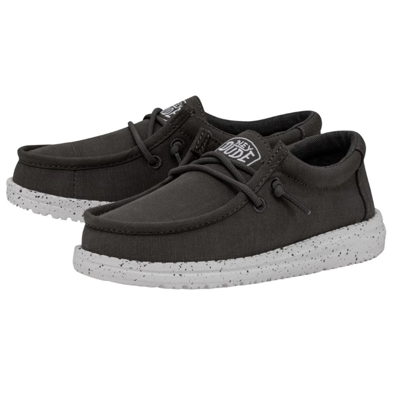 Happy feet, meet the Wally Slub Canvas collection. Hey Dude’s iconic, go-to moc combines a medium-weight, textile fabric with a vintage look and Hey Dude durability throughout. Finished off on an ultralight outsole featuring our easy-on system with no-tie, elastic laces and a cushioned ankle collar for all day support.