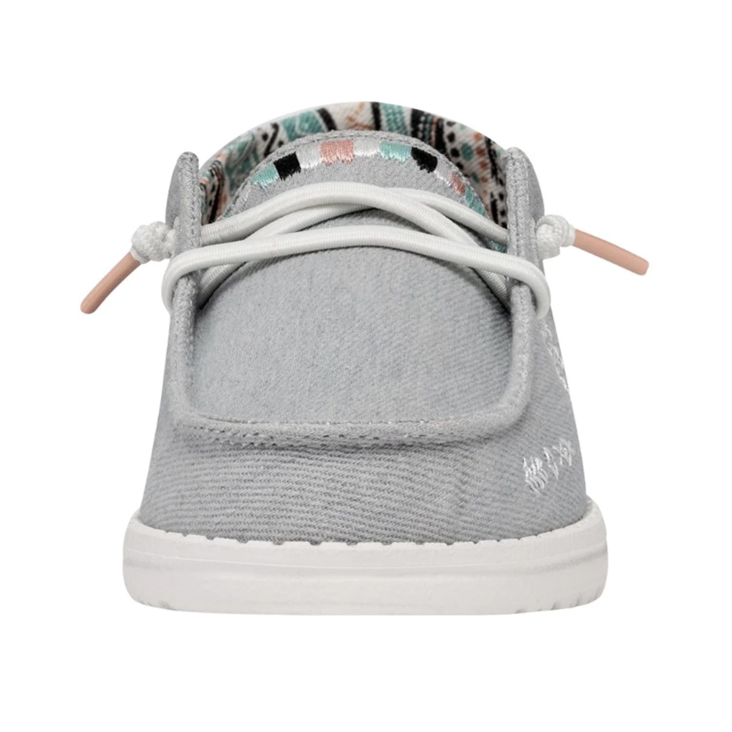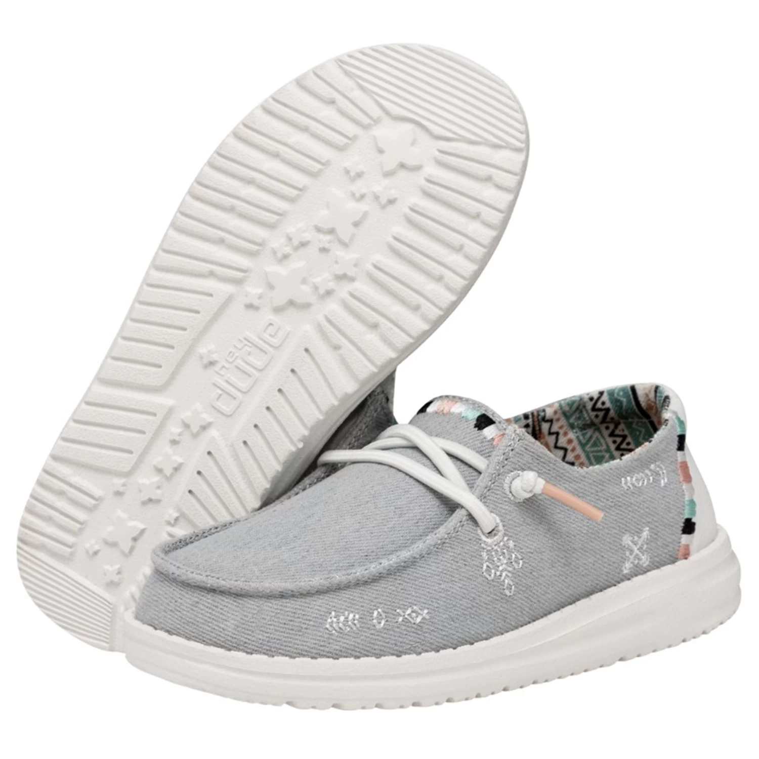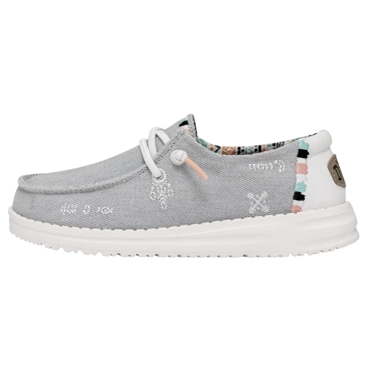 The most iconic moc meets lightly washed materials and boho-chic inspired, hand-stitched details that come together for a customized look. The Wendy Boho collection features a breathable, cotton-blend upper and lined with the same materials for all day festivities. Finished off on an ultralight outsole and Hey Dude’s easy-on system with no-tie cotton laces to keep the comfort going all day long.Â