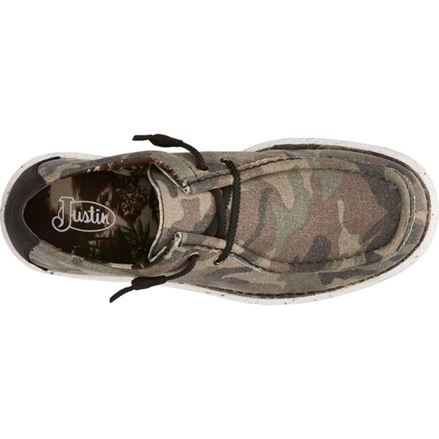 The Hazer in camo from the Justin Casuals collection features a comfortable moc-toe styling with contrast detailing and cushioned insole for a laid-back, easygoing fit. Perfect to war with your favorite jeans or shorts.