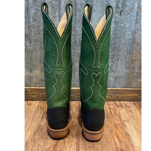 These stunning Black Hippo Boots from Olathe feature a beautiful jade colored top. These boots are made for the real working cowboy and will hold up to every job you have to get done.Â