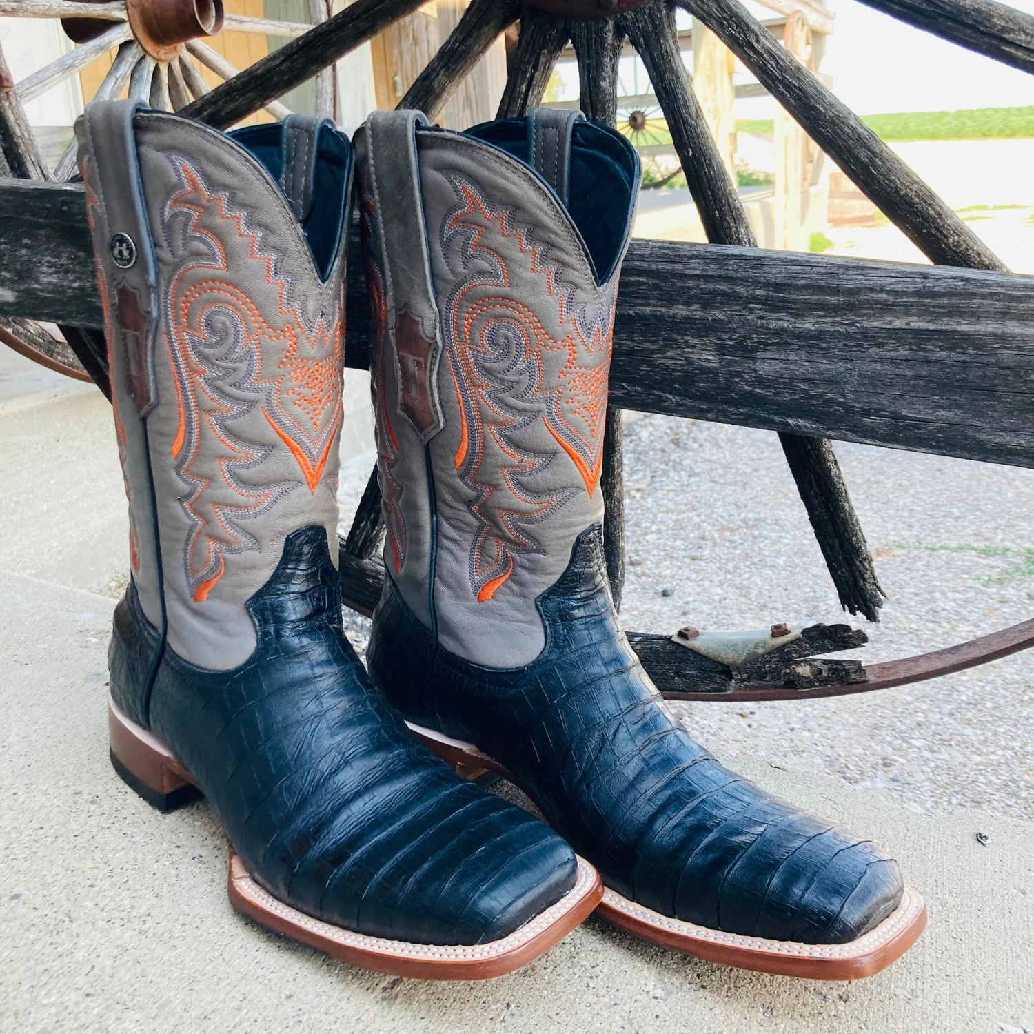 How sharp are these black caiman belly Tanner Marks! These boots would be perfect for weddings or any nice occasion! These boots are a square toe, with a hybrid sole. They feature comfort cushion insoles for the upmost comfort while taking on the day.